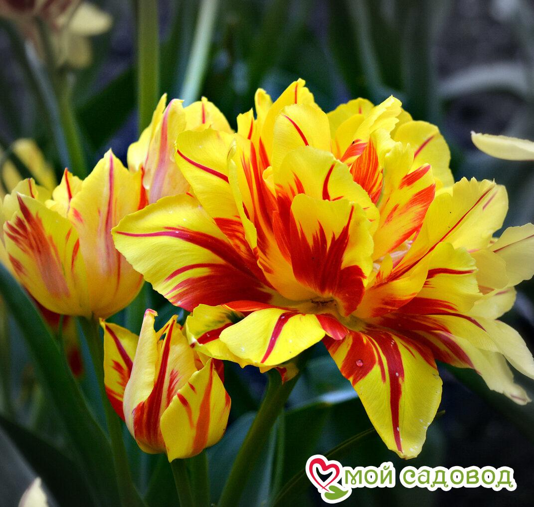 Тюльпан махровый ранний Монселла – сорт с пионовидными бутонами около 10-11 сантиметров в диаметре (высота бутона – около 7 сантиметров). Лепестки ярко-желтые с красными штрихами.  Высота стеблей – около 30-35 сантиметров.  Период цветения: Апрель-Май. Зимостойкость: -40°С. Размер луковиц:11/12 Место посадки Тюльпаны любят солнечное открытое место, которое защищено от ветров, но могут расти и при легком затенении. Не допускается размещать тюльпаны после других луковичных, а также после растений семейства пасленовых. Возвращать тюльпаны на прежнее место можно только спустя 2-3 года, как исключение на одном месте возможно выращивание тюльпанов в течение 3-4 лет. Уход Тюльпаны не выносят застоя воды, но своевременный полив в разумных нормах им просто необходим. Поливают растения в сухую погоду на глубину залегания корней, а это 25-30 см, поэтому расход воды на 1 м2 должен составлять 25-30 л. Особенно важен полив в период бутонизации и цветения. Весной сразу после появления всходов землю вокруг цветов рыхлят, чтобы открыть доступ воздуха к корням растений и существенно уменьшить испарение влаги.